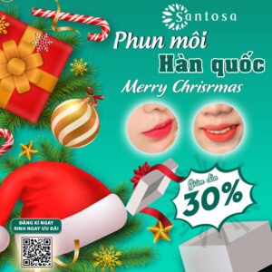 Với không khí rộn ràng của mùa lễ hội Noel, Santosa đã quyết định mang đến một chương trình khuyến mãi hấp dẫn dành cho khách hàng. Khách hàng khi đến Santosa sử dụng dịch vụ phun môi sẽ được giảm ngay 30% trên tổng giá trị dịch vụ.