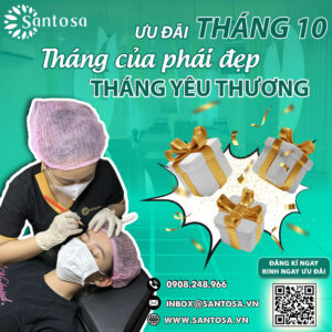 Trong tháng 10 này, Tháng dành cho các chị em phụ nữ, Viện thẩm mỹ Santosa đã cập nhật mới nhất chương trình khuyến mãi phun xăm thẩm mỹ tháng 10 với đa dạng ưu đãi hấp dẫn dành cho mọi đối tượng khách hàng muốn sở hữu một diện mạo mới mẻ, bừng sáng trong dịp lễ sắp tới.